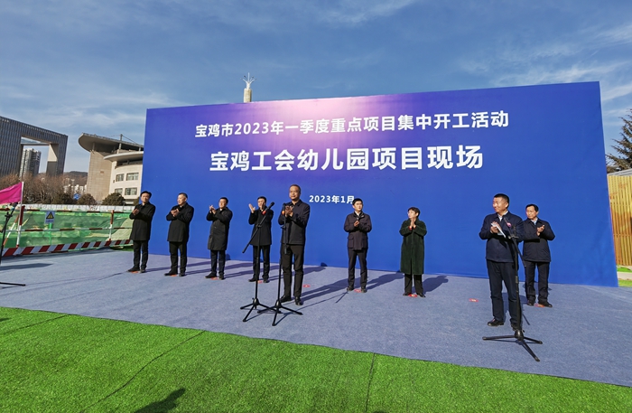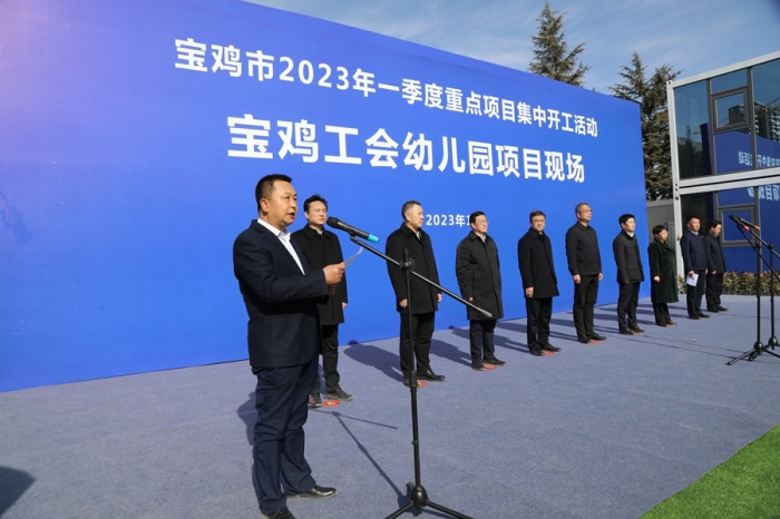 1月28日,寶雞市2023年一季度重點(diǎn)項(xiàng)目集中開工活動(dòng)在集團(tuán)公司承建的寶雞市總工會幼兒園項(xiàng)目現(xiàn)場舉行,市委書記楊廣亭下達(dá)開工令,市長王勇、市人大常委會主任景耀平、市政協(xié)主席劉榮賢、市委副書記段小龍參加活動(dòng)。市委常委、常務(wù)副市長賈珉亮主持開工活動(dòng)。市人大常委會副主任、市總工會主席陳小平介紹項(xiàng)目情況。